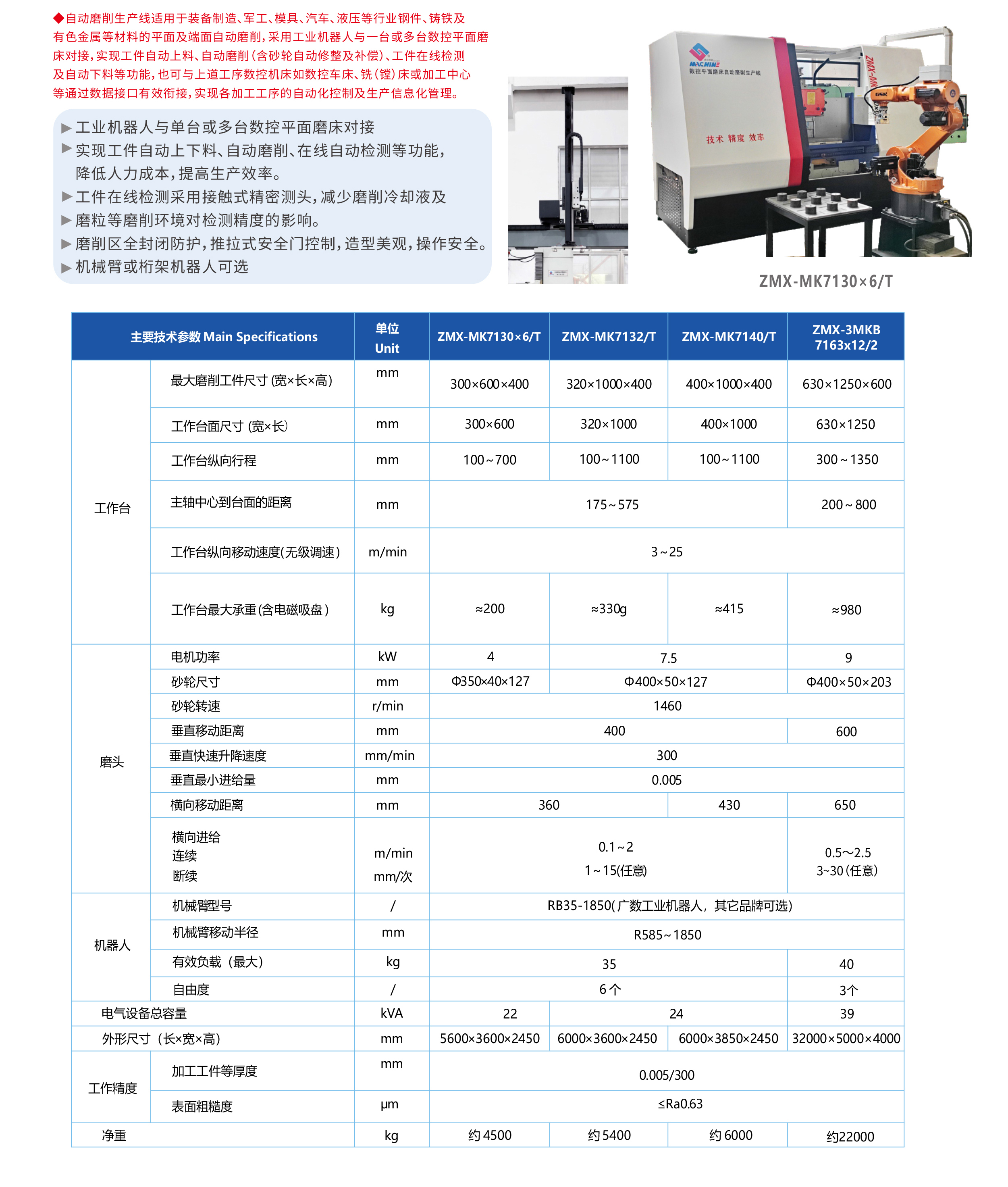 數(shù)控平面磨床自動磨削生產(chǎn)線ZMX-MK7130x6/T
