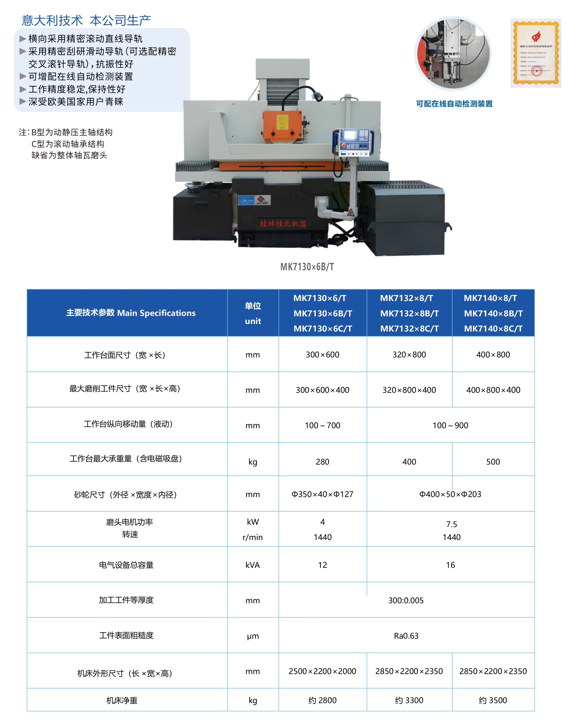 數控臥軸矩臺平面磨床(拖板移動式)MK7130×6B/T