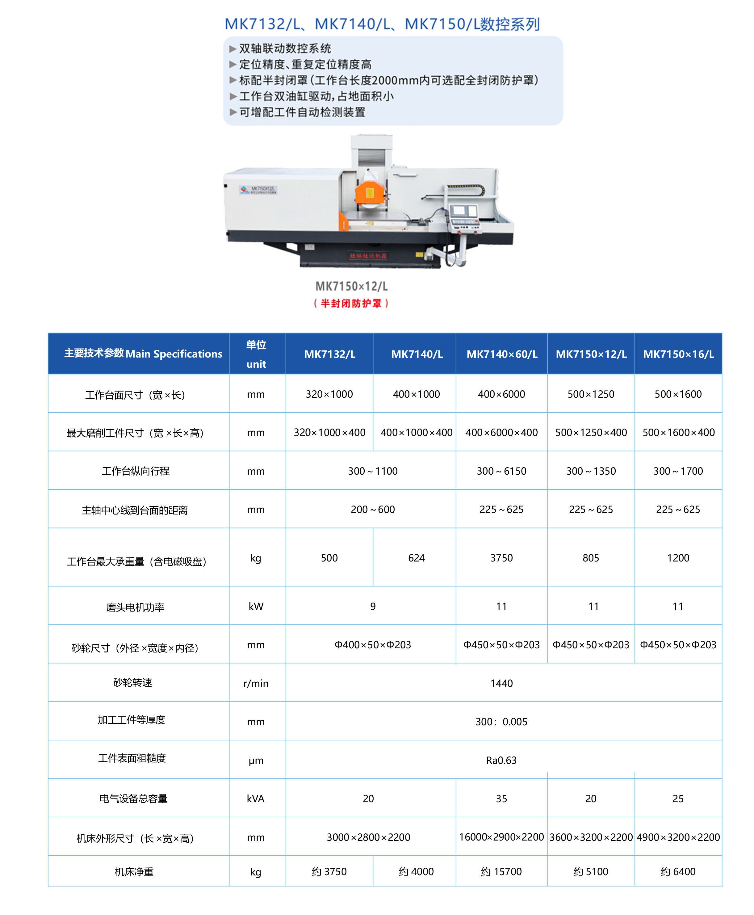數(shù)控臥軸矩臺(tái)平面磨床(立柱移動(dòng)式)MK7150×12/L